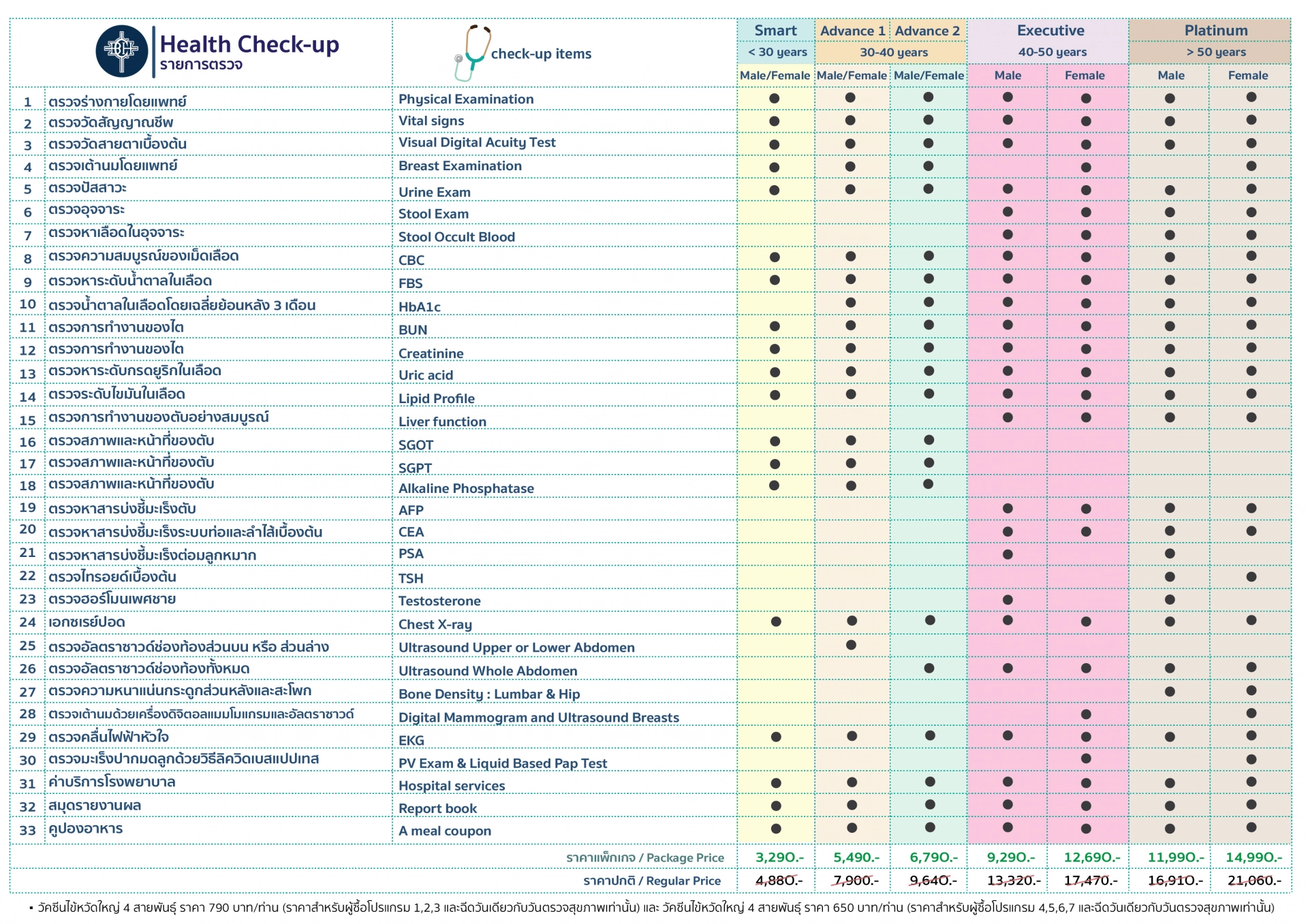 เฉพาะผู้ที่ซื้อโปรแกรมตรวจสุขภาพตามที่ระบุ