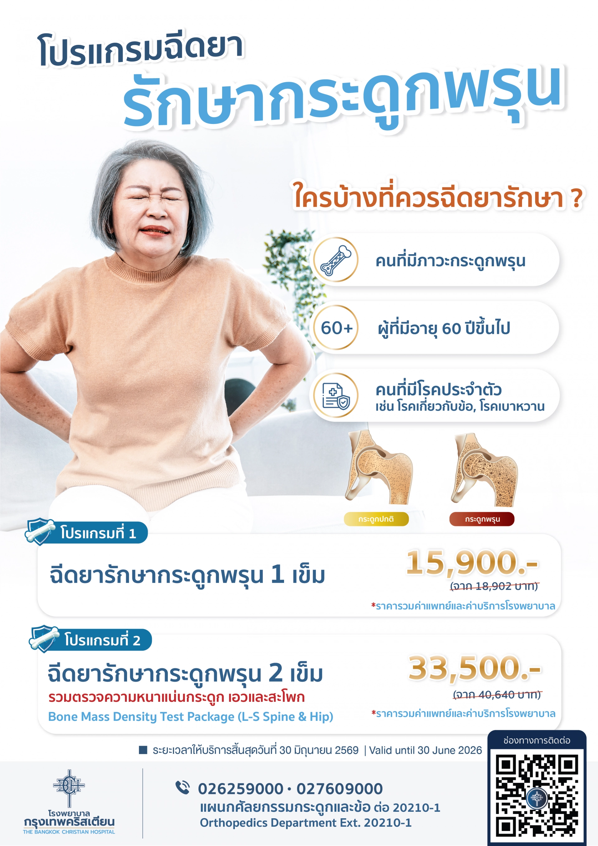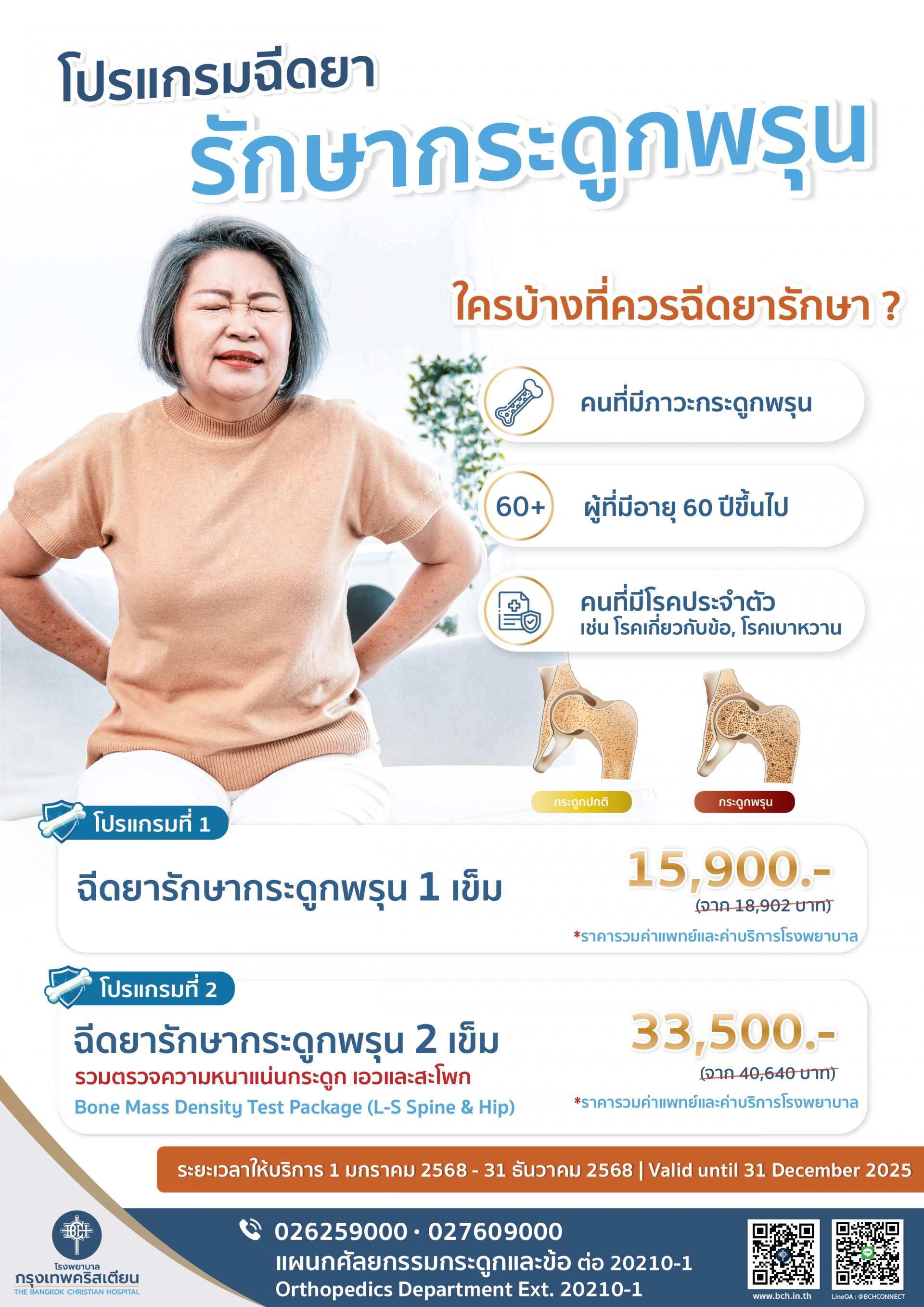 2.ฉีดยารักษากระดูกพรุน 2 เข็ม + ตรวจความหนาแน่นกระดูกเอวและสะโพก ราคา 33,500 บาท