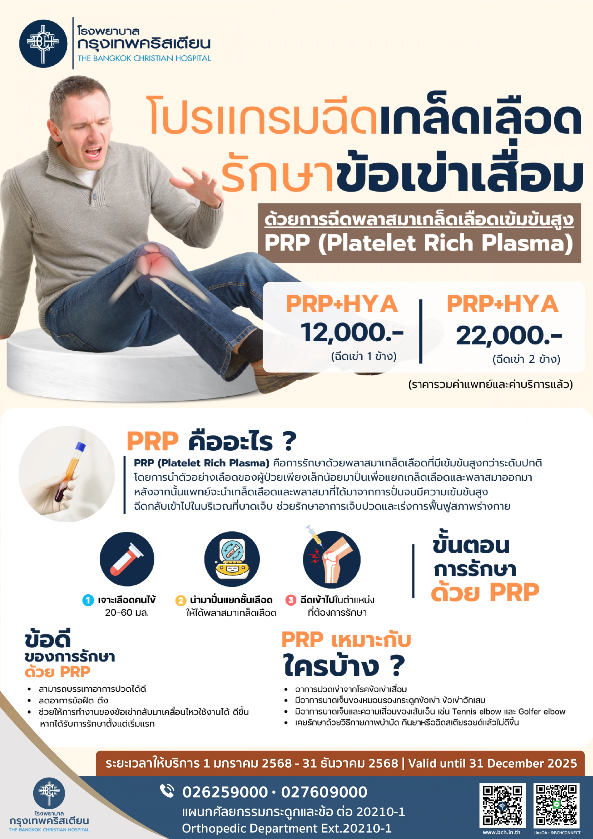 โปรแกรมฉีดเกล็ดเลือดรักษาข้อเข่าเสื่อม PRP (Platelet-Rich Plasma)